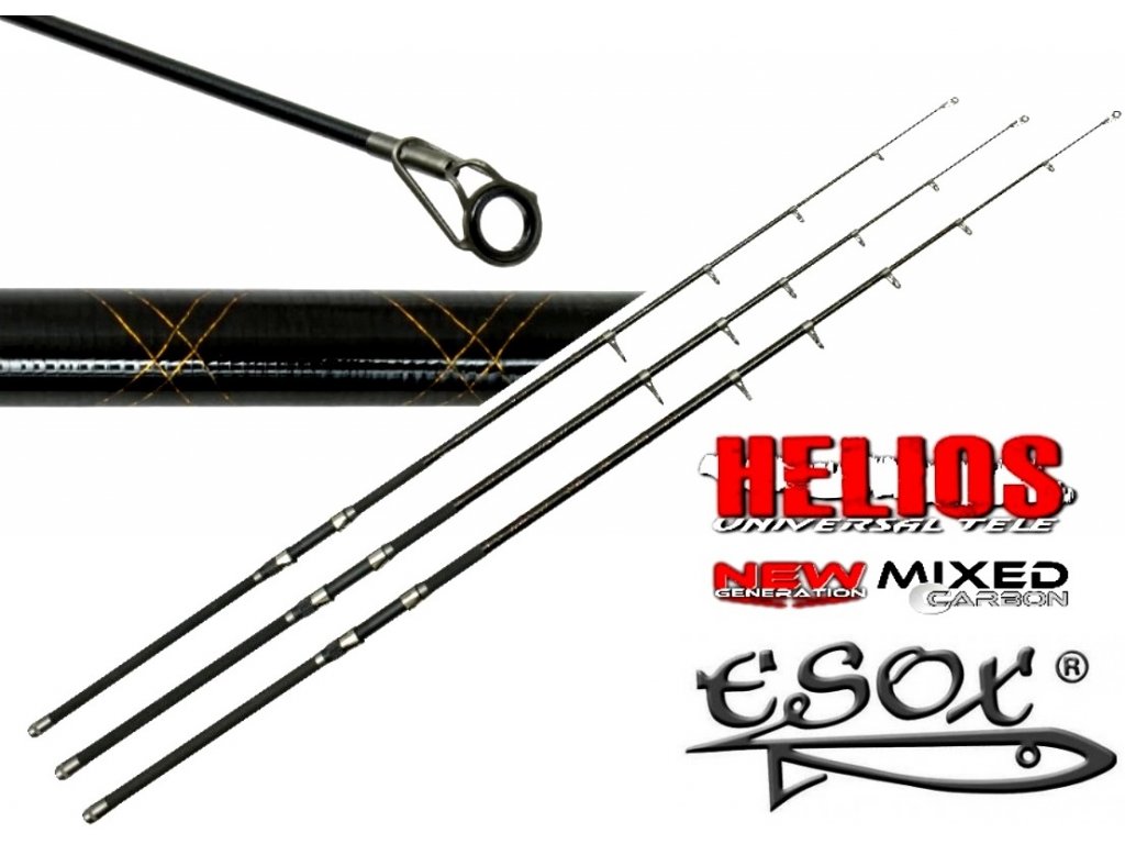 Nová generace univerzálních teleskopických prutů Helios je vynikající volbou pro rybáře, kteří upřednostňují skladné a praktické pruty. Série teleskopických prutů ESOX Helios je vyrobená z kombinovaného MIXED CARBONu, který dodává těmto prutům perfektní akci a neobyčejný požitek při zdolávaní ryb. Zesílený blank prutů je konstruovaný nejmodernějšími technologiemi a zaručuje prutu extrémní odolnost ve všech podmínkách. Kvalitní SIC očka jsou i proti svojí tenkosti odolné i při hrubším zacházením. Pruty Helios splňují i ty nejnáročnější požadavky všech rybářů.