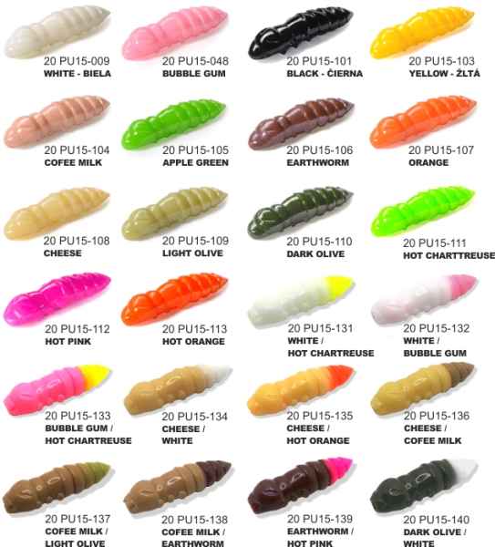 Umělá nástraha FishUP Pupa je velmi oblíbená a působí doslova jako magnet na pstruhy. Je vyrobena z měkkého materiálu, díky čemuž ryba více důvěřuje nástraze a někdy ji dobírá i na vícekrát. FishUP Pupa je poměrně velká nástraha, což umožňuje daleké nahazování a to i za větrného počasí. Stejně jako většina umělých nástrah ve tvaru larvy nemá žádný pohyb. Svou vlastní váhou nebo s malou hlavičkou přepadává vodním sloupcem. Jednou z možností je i vedení larvy těsně pod hladinou. Je jen na vás jakým způsobem bude prezentována. Nástraha je navíc dipovaná což zvyšuje počet záběrů a ve vodě zanechává výraznou pachovou stopu. Přírodní barvy zaručí úspěch v čisté vodě, naopak zářivé budou úspěšné v hluboké nebo kalné vodě.