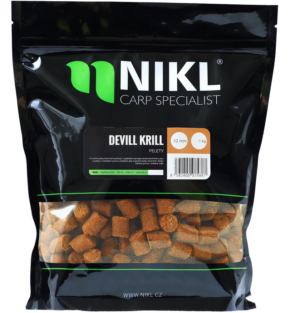 Velmi atraktivní pelety vycházející z konceptu boilies Devill Krill. Perfektní jako doplněk k boilies, do PVA punčoch, nebo jako perfektní nástraha na rychlé chytání. Obsahují všechny významné atraktory a tekuté složky jako samotné boilies. Dostupné ve 3 velikostech. Malé – 3mm, jsou vhodné do PVA punčoch a sáčků a velikosti 10 a 18mm s dírou, jsou skvělou návnadou, ale i nástrahou pro rychlý lov. Doba rozpustnosti je závislá na teplotě vody, proudění a aktivitě ryb. K zatraktivnění doporučujeme naše boostery korespondující příchutě.