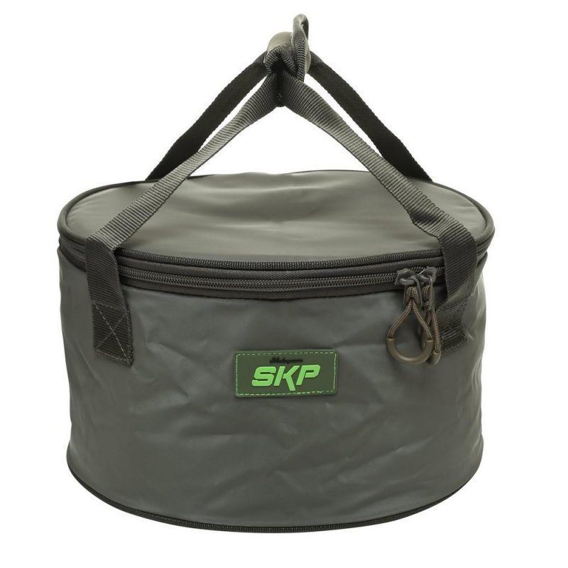 SKP Groundbait bowl + Integrated riddle je taška na krmení s integrovaným sítem vyrobena z nepromokavé tkaniny pro míchání a přípravu krmiva.