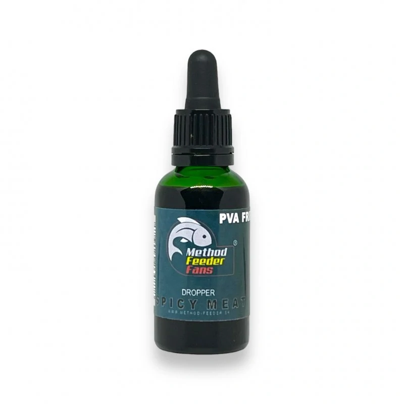 V sortimentu Method Feeder Fans přibyla koncentrovaná, čistá esence s názvem Method Dropper. Jedná se o esenci, ze které vyrábíme všechny naše produkty. Pokud patříte mezi domácí výrobce nástrah, chcete si zatraktivnit vaše nástrahy, které již nevoní podle Vašich představ, případně chcete zvýšit koncentraci vůně na Vaší nástraze, Method Dropper je tou správnou volbou. Balení obsahuje praktické kapátko, se kterým bude aplikace esence velice pohodlná. Můžete nakapat i na připravené krmítko, bez obav i na Vaši PVA, produkt je PVA FRIENDLY - nerozpouští PVA!