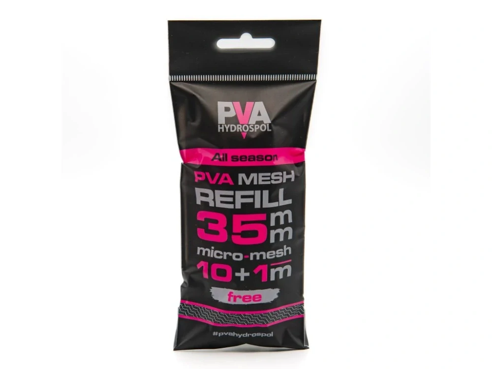 Celoroční náhradní PVA punčocha Hydrospol o průměru 35 mm je vyrobena z hustého micro-meshe japonských PVA vláken, zajišťuje pevnost při plnění a spolehlivou rozpustnost ve vodě.