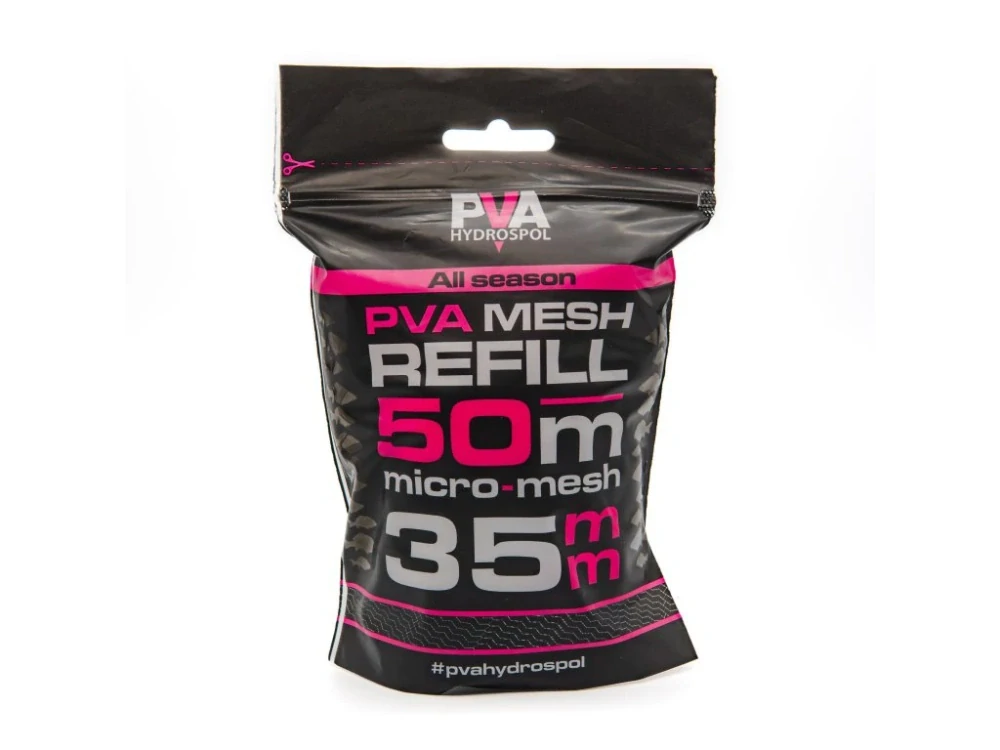 Celoroční náhradní PVA punčocha Hydrospol o průměru 35 mm v návinu 50 m je vyrobena z hustého micro-meshe z japonských PVA vláken, který zajišťuje pevnost při plnění a spolehlivou rozpustnost ve vodě.