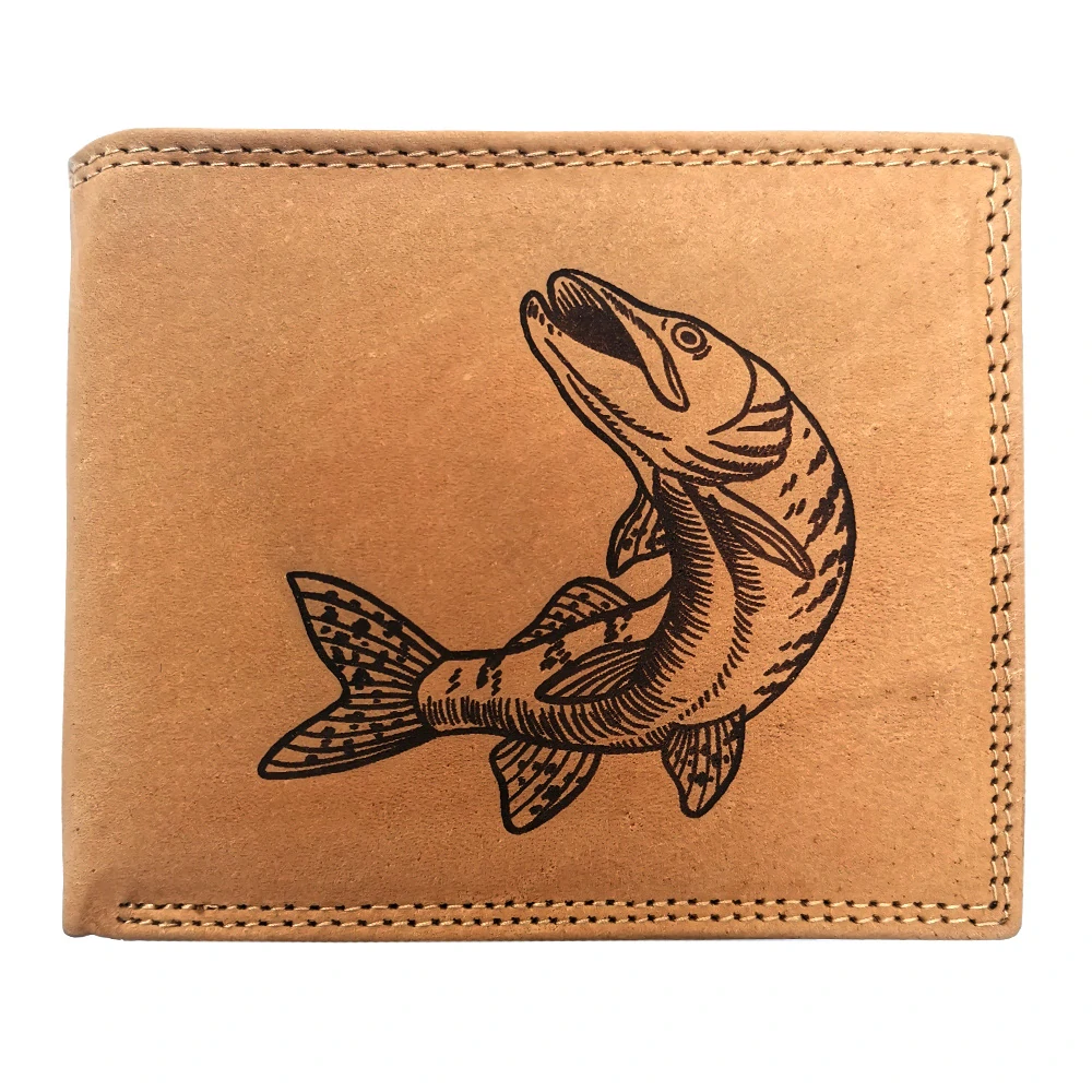 Všechny laserové vzory jsou dodávány u nás ve skladu laserovým vypalováním do kůže peněženky, zatímco embosované vzory jsou vtiskovány do kůže při výrobě peněženky. Všechny laserové a embosované peněženky jsou vyrobeny z hovězí kůže v úpravě HUNTER.